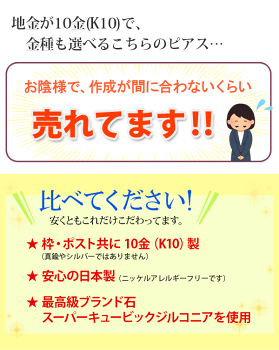 【日本製】【数量限定セール特価!】 スワロフスキージルコニア ピアス K10YG/PG/WG キュービック cz 3mm 『キャッチ別売』 あす楽 ▼