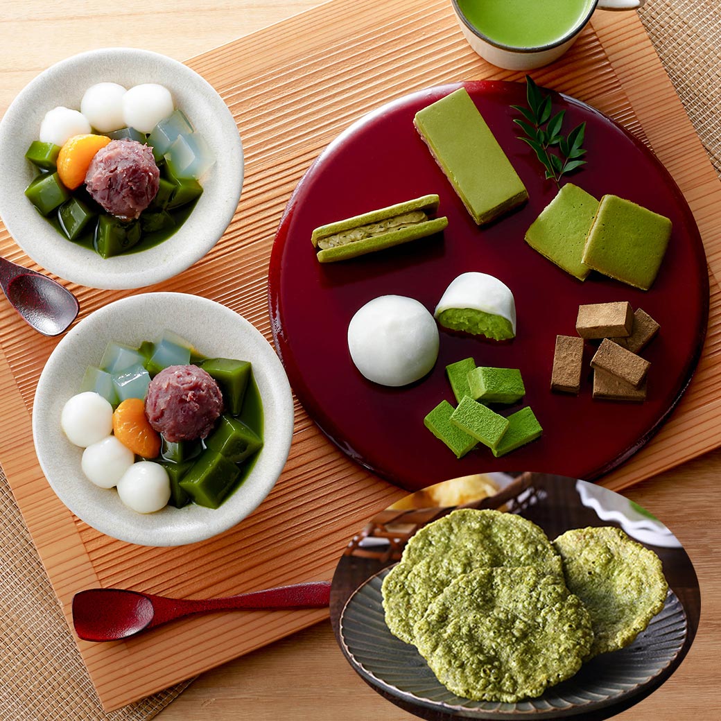 抹茶あんみつ・抹茶だいふく・抹茶生チョコレート・ほうじ茶生チョコレート・抹茶バターサンド・抹茶チーズケーキスティック・抹茶ラングドシャ・抹茶塩のえび天せんべいを、お得な初回限定価格で。