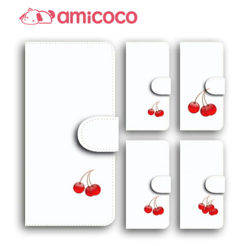 【手帳型,スマホケース,主要,全機種対応,iPhone9,Galaxy,S20,5G,Xperia,XZ3,等,全面印刷,メール便 送料無料】iPhone11 iPhone11Pro Xperia5 Xperia8 XZ2 sense3 pixel4 F-01L 他さくらんぼ・チェリー 白