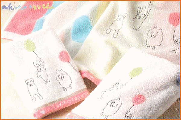【アキコオブチ】【AKIKOOBUCHI】ウォッシュタオル【フライングバルーン】【たおる】【タオル】【動物】【アニマル】【水彩画】【メーカー】【キャラクター】【グッズ】【かわいい】