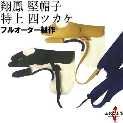 【プレゼント付き】弓道 ゆがけ 翔鳳 堅帽子 特上 四ツカケフルオーダー製作 手形製作 茶 黒 かけ ユガケ 四つ掛け 四ツガケ弓具 弓道具 送料無料 J-079
