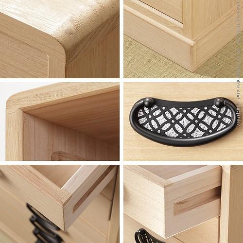 引出しはしっかりしたつくりの「留め加工」を用い、金釘を使用しておりません。