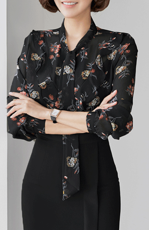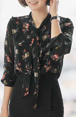ボウタイ ブラウス シフォン レディース フラワープリント トップス 韓国 ファッション フォーマル スーツ インナー オフィス 結婚式 パーティー 二次会 OL ゆったり 体型カバー 母 ママ 服装 20代 30代 40代 50代 シースルー 大人 可愛い おしゃれ フリル[spd]