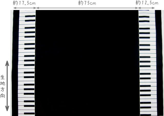 ◆生地の両端にピアノの鍵盤の柄をプリントしました。